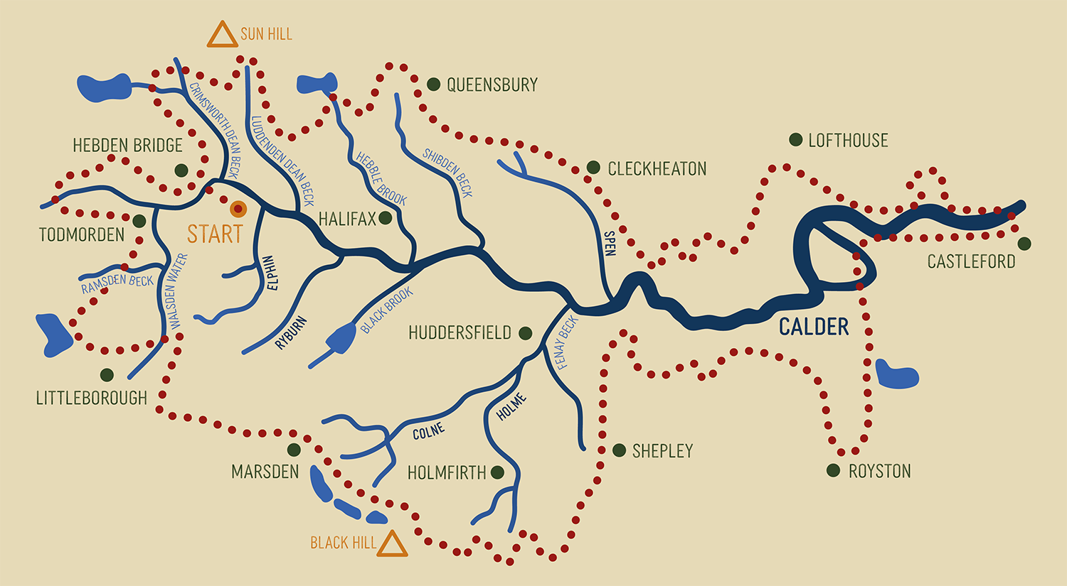 The Calder Divide Trail is a long distance circular route across 12 valleys, 6 moors and 1 floodplain in West Yorkshire. It is a multi-day adventure along the watershed of the River Calder.